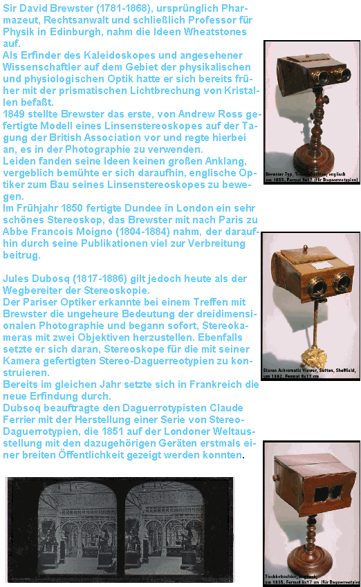 Die Versuche des David Brewster und der erste öffentliche Erfolg